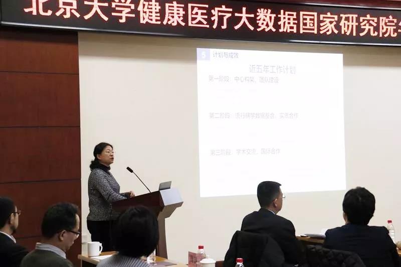 接下来,张路霞院长助理对国家研究院2018年工作开展情况和2019年工作规划进行了汇报。2018年,在学校领导及各相关单位的支持下,国家研究院完成了工作场所建设、软硬件配置以及人才的引进工作等自身建设,完成了主管部门的委托任务,拓展了与曼彻斯特大学等国际一流高校的相关领域合作,积极争取获批科研项目,推动了我国首个“健康数据科学”学科的建设,成功举办首届北京健康医疗大数据论坛。2019年,国家研究院将继续在以上工作的基础上,不断拓展研究的深度和广度,做好健康医疗大数据发展的推动者与实践者。