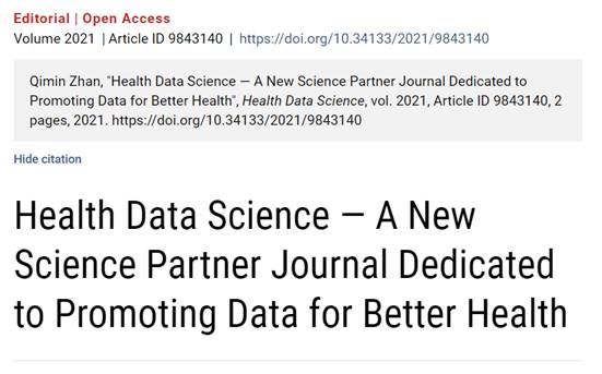 2021年6月16日,由北京大学主办、北京大学健康医疗大数据国家研究院承办、作为Science合作期刊在全球发行、开放获取的全新英文科技期刊Health Data Science(中文名《健康数据科学》)正式刊文。主编北京大学健康医疗大数据国家研究院院长詹启敏院士撰写的创刊社论(Editorial)译文如下:
