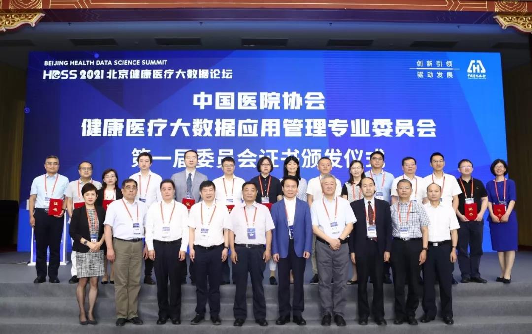 主席演讲环节结束后,举行了中国医院协会健康医疗大数据应用管理专业委员会第一届委员会的证书颁发仪式,为主任委员、副主任委员和常务委员颁发证书。
