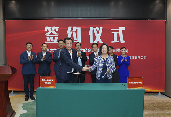 在北大医学与世纪金源集团的合作框架协议下,北京大学护理学院院长尚少梅,北京大学健康医疗大数据国家研究院院长助理张路霞代表各自单位,分别与世纪金源集团的子公司——腾云大健康管理有限公司代表王戈董事总经理签署合作协议。这将进一步深化校企合作,服务国家医药卫生事业和经济社会发展。