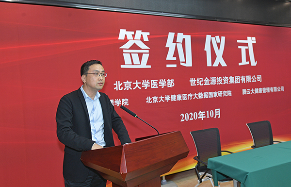 10月15日,北京大学医学部和世纪金源投资集团有限公司举行合作签约仪式。北京大学常务副校长、医学部主任詹启敏院士,世纪金源集团董事局执行董事、总裁黄涛,董事局董事、执行副总裁黄世荧等领导出席签约仪式。仪式由医学部副主任肖渊主持。