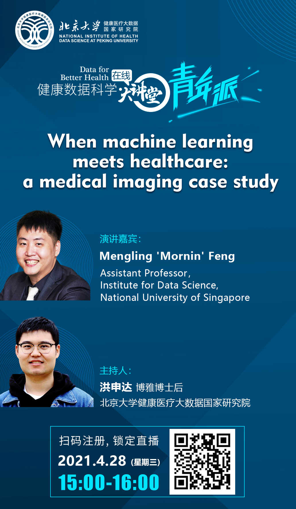 健康数据科学在线大讲堂第八讲为研究者量身打造《When machine learning meets healthcare: a medical imaging case study》讲座,期待您的参加!周三(4月28日)15:00,不见不散(席位有限,建议提前扫码注册锁定直播并提前入场)